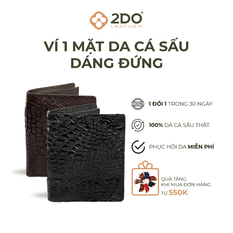 - Chất Liệu: Da cá sấu tự nhiên cao cấp, bền đẹp và sang trọng. Bề mặt da được xử lý tỉ mỉ, mang đến vẻ ngoài đẳng cấp và độc đáo.