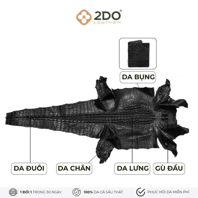 Chất liệu: Da cá sấu thật 100% – vân bụng & gai cá con cao cấp