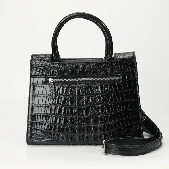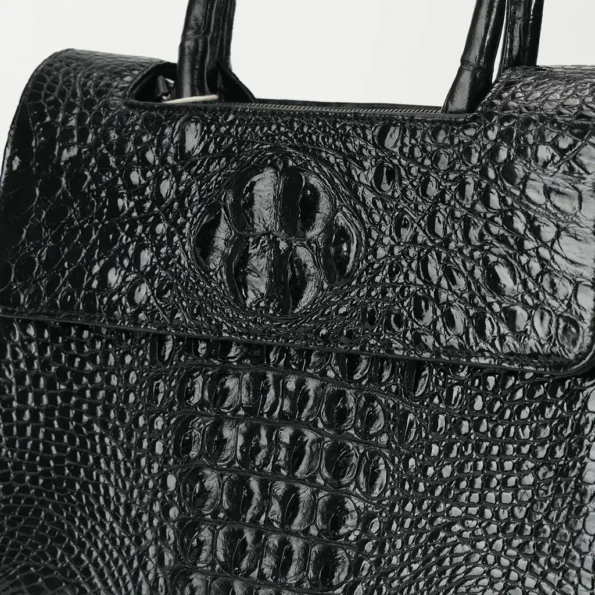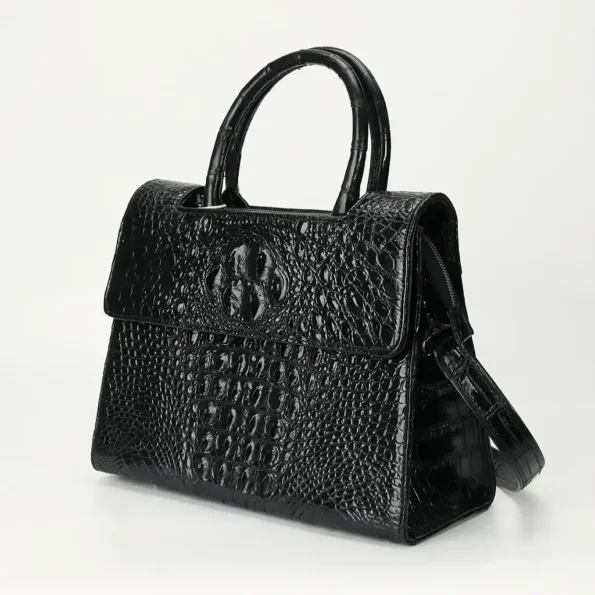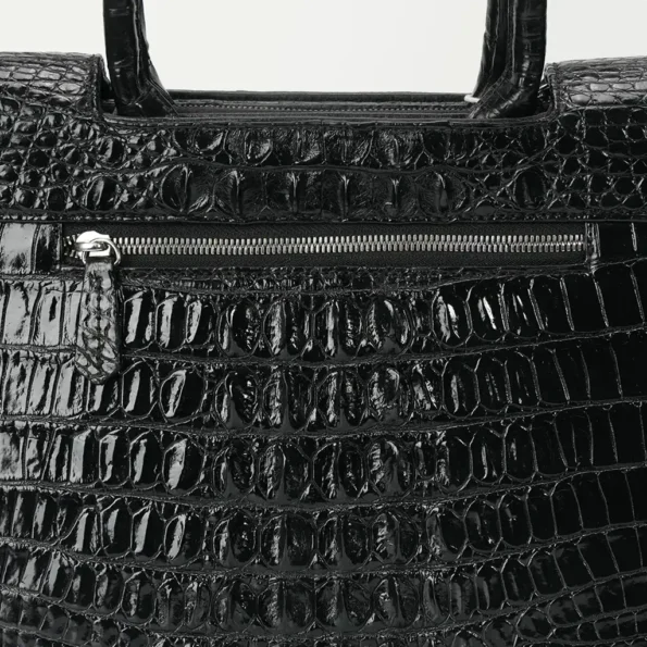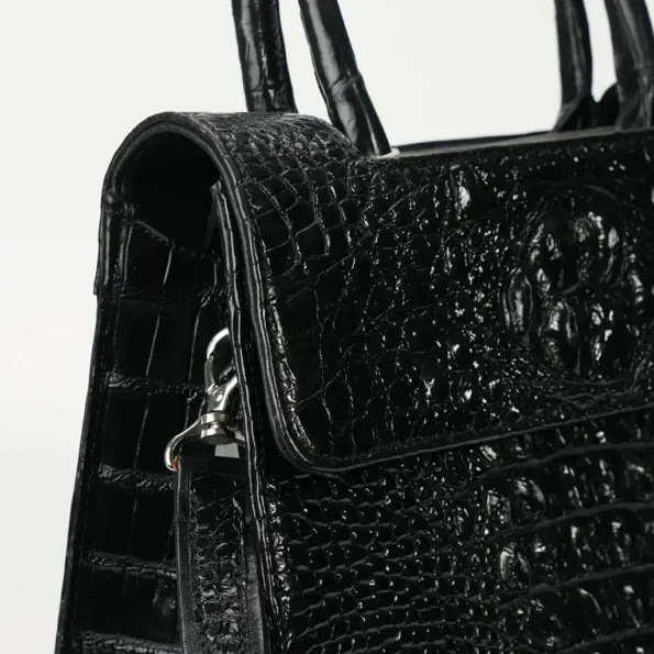 • Da cá sấu thật 100% – chọn lọc phần da gai và da bụng liền mạch, bề mặt được xử lý bóng mịn, giữ màu đen sang trọng.