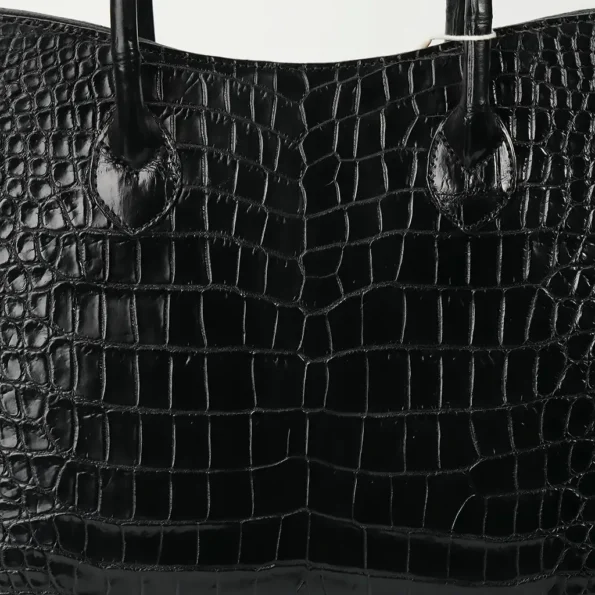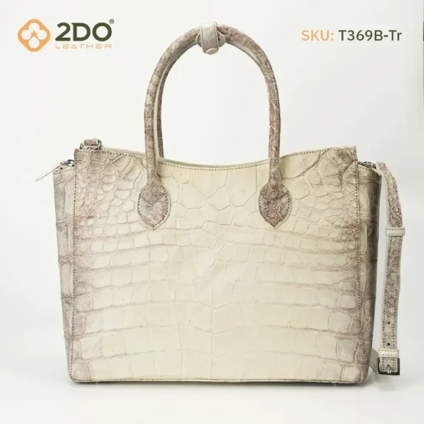 • Da cá sấu thật 100% – phần da bụng trắng hiếm, bề mặt bóng tự nhiên, vân nổi rõ ràng và độc đáo.