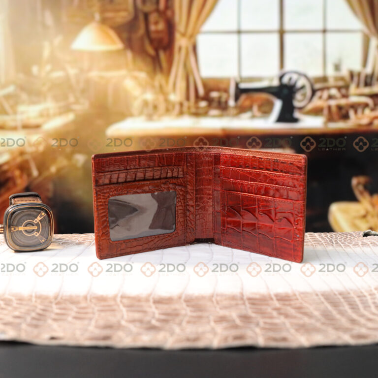 Chất liệu: Da cá sấu thật 100% – sử dụng phần đầu cá sấu nguyên khối, kết hợp da bụng và hông để tạo nên bề mặt ví chắc chắn và bền bỉ.