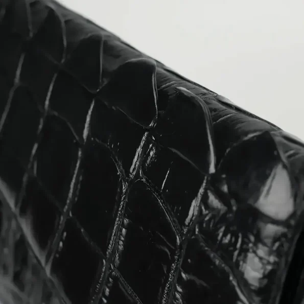 - Được chế tác từ da cá sấu thật 100%, chọn phần đuôi cá sấu tự nhiên, nổi bật với lớp gù mềm dẻo, bóng mịn và vân da uyển chuyển.
