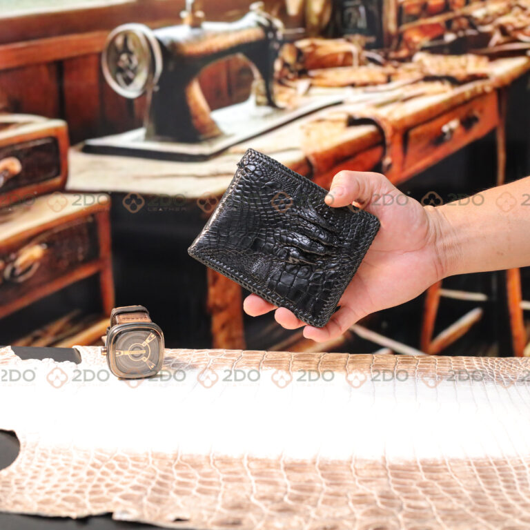 Chất liệu: Da cá sấu thật 100% – lựa chọn phần bụng cá sấu Nam Phi với vân nổi đặc trưng, bền bỉ và thẩm mỹ cao.