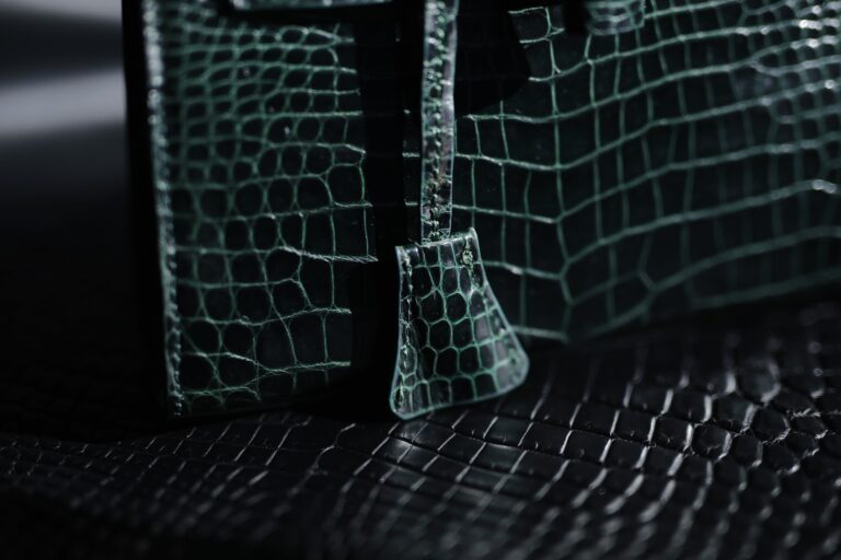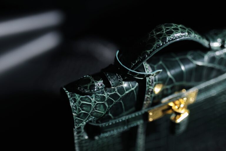 - Chất Liệu: Da cá sấu thật, với vân da tự nhiên sắc nét, được xử lý kỹ lưỡng để tăng cường độ bền và duy trì vẻ đẹp qua thời gian.