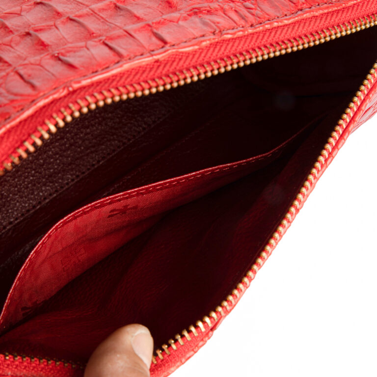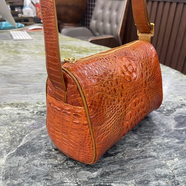 - Chất Liệu: Da cá sấu thật, với vân da nổi bật và bề mặt bóng mượt, được xử lý để đảm bảo độ bền cao và vẻ đẹp tự nhiên.