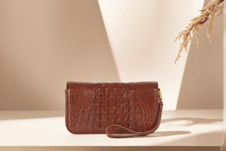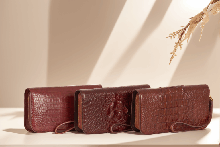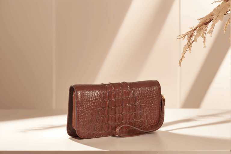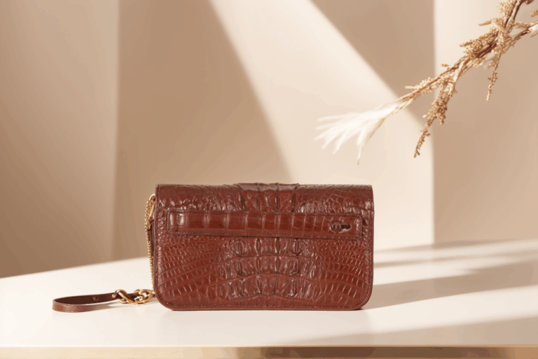 Chất liệu: Da cá sấu thật 100% – lựa chọn phần bụng cá sấu Nam Phi với vân nổi đặc trưng, bền bỉ và thẩm mỹ cao.