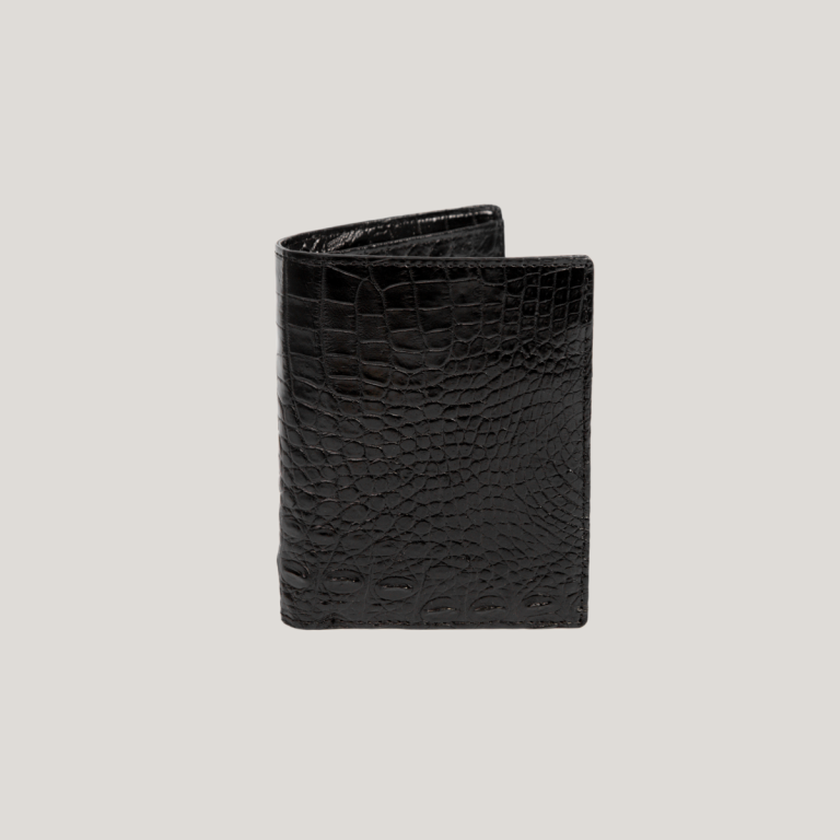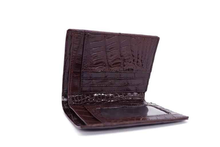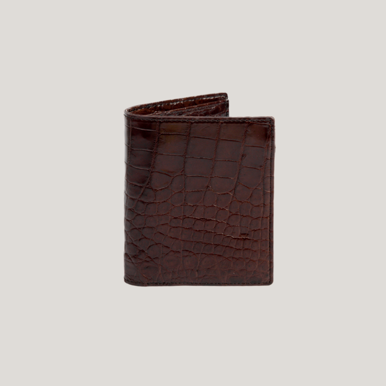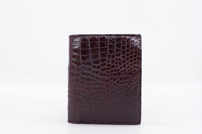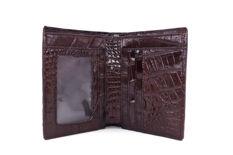 Chất liệu: Da cá sấu thật 100% – sử dụng phần đầu cá sấu nguyên khối, kết hợp da bụng và hông để tạo nên bề mặt ví chắc chắn và bền bỉ.