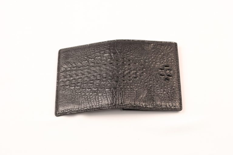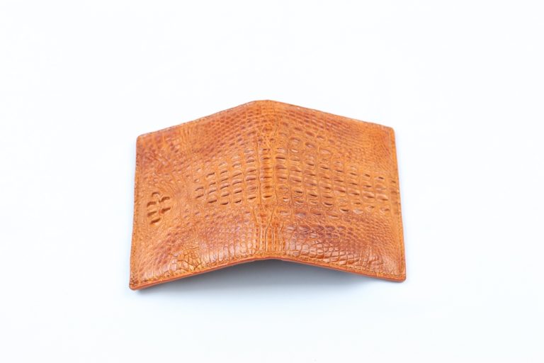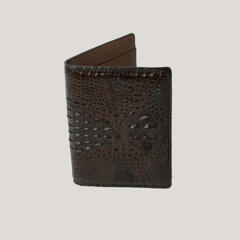 Chất liệu: Da cá sấu thật 100% – sử dụng phần đầu cá sấu nguyên khối, kết hợp da bụng và hông để tạo nên bề mặt ví chắc chắn và bền bỉ.
