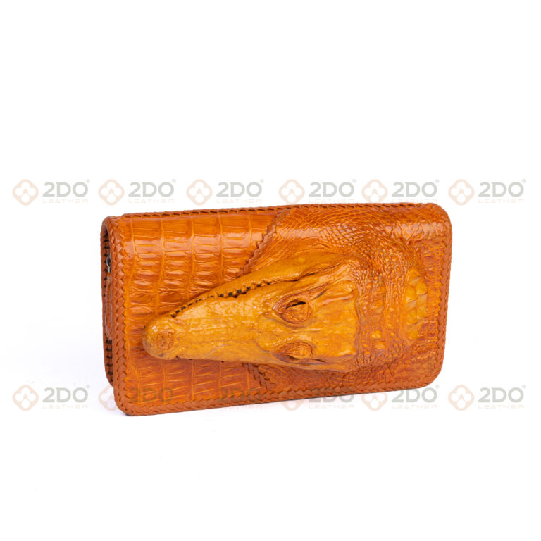 Chất liệu: Da cá sấu thật 100% – sử dụng phần đầu cá sấu nguyên khối, kết hợp da bụng và hông để tạo nên bề mặt ví chắc chắn và bền bỉ.